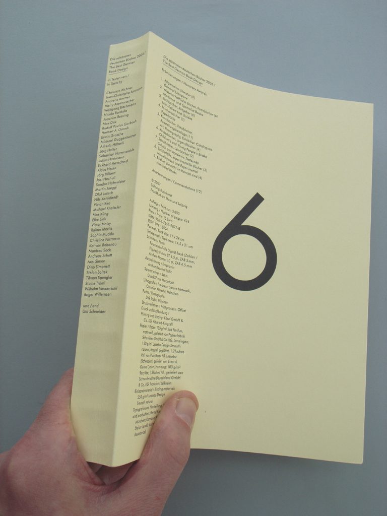 The threads below the cover can just be felt in this elegant and wonderfully strong cold-glue binding. (Die schönsten deutschen Bücher 2006, Frankfurt a.M. / Leipzig: Stiftung Buchkunst, 2007)