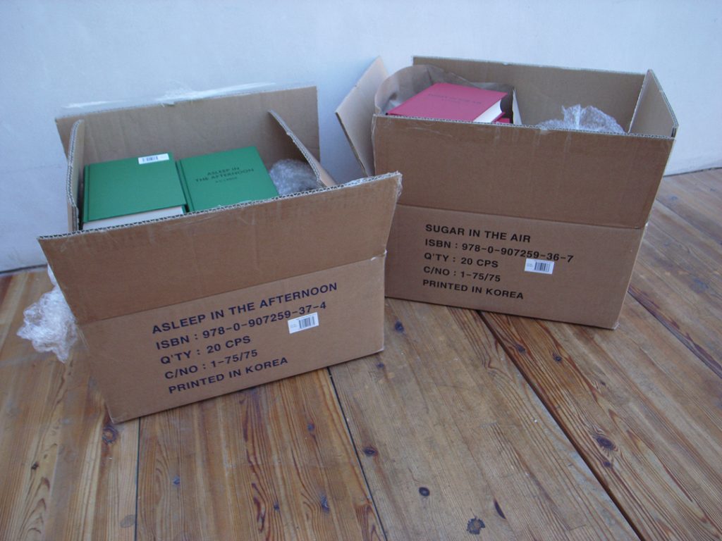 We have received our first copies of Sugar in the air and Asleep in the afternoon. Our accompanying book, God’s amateur, is with the printers now: we expect an advance supply of it in a few days’ time. The three books will be formally published in early December, after the main shipment of the novels is with our UK distributor.