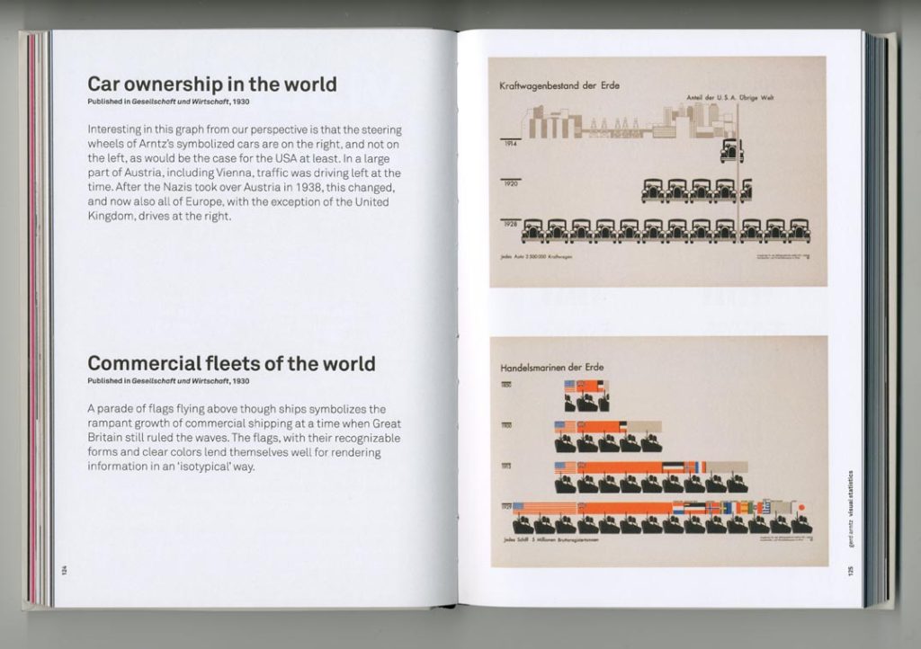 In Vienna, Arntz improves the quality of design at the museum and soon becomes involved, not only in making exhibitions but also in designing the first visual statistics as charts to be displayed in the museum or to be published in books or Mappen, loose-leaf collections of charts. [p. 31]