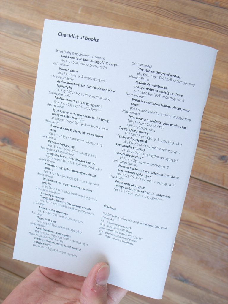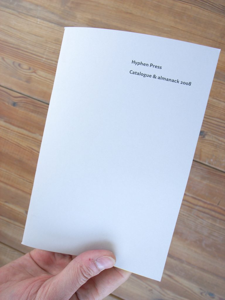 We have just received finished copies of our new catalogue of books. This is the first full printed catalogue we have made. Every in-print title is represented, in specially made photographs, and there is a retrospective display of the covers of all the titles we have produced. Bound into the booklet is an ‘almanack’ of short texts.