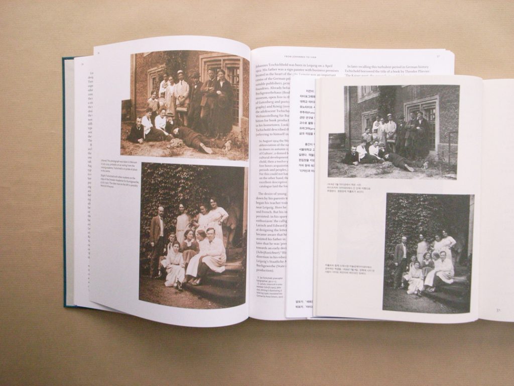 The principal change in the Korean edition is the separation out of the bulk of the pictures, printed now in colour on coated paper. The main text and some black-and-white pictures are printed in black on cream uncoated paper.