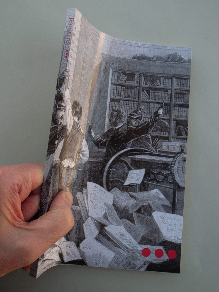 Alastair Johnston, [ELLIPSIS] (…) (Berkeley CA: Poltroon Press, 2008, 124 pages, $19.95). The cover image is a wood-engraving showing police breaking into the printing office of the Nihilist journal La Volonté Nationale, St Petersburg, 30 January 1880.