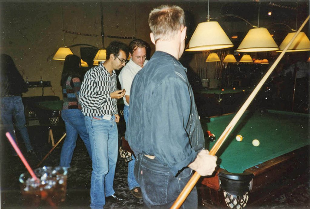 Typographers playing pool: Fred, Martin, Erik Spiekermann (back to the camera).