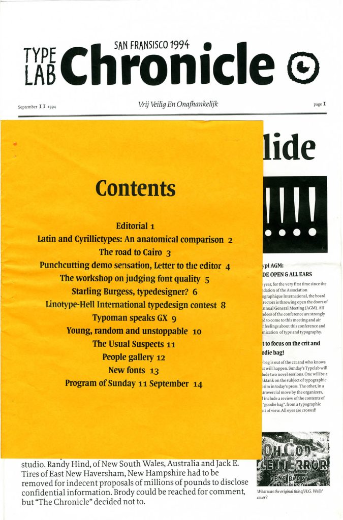 The word ‘Chronicle’ in the masthead was drawn, same-size, by Peter Matthias Noordzij.