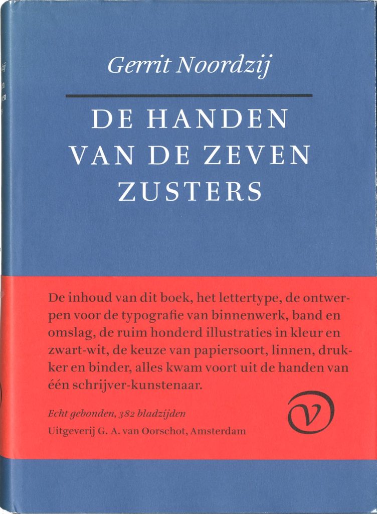 De handen van de zeven zusters, Amsterdam: Van Oorschot, 2000 (240 × 173 mm). The note on the belly-band reads: ‘The content of this book, the typeface, the design of the inside pages, band and jacket, the approximately one hundred illustrations, the choice of paper, binding cloth, printer and binder, all came from the hands of a writer-artist.’ The remarkably honest blurb on the back of this belly-band deserves to be read too.