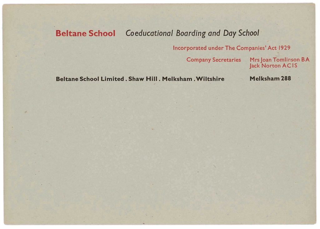 Another common factor: James had been a boarder at the Beltane School in Melksham, Wiltshire (c. 1940–6). This was a progressive school, co-educational, following Montessori principles, and with a significant number of German-speaking émigrés on the teaching staff. I might guess that James’s time at Beltane helped to bring out certain traits in him – a sense of democratic equality would be one of them. In 1949, Froshaug, designed and printed stationery for Beltane. Froshaug had moved in progressive, often émigré circles since his time as a student at the Central School – Beltane was a natural client for him.