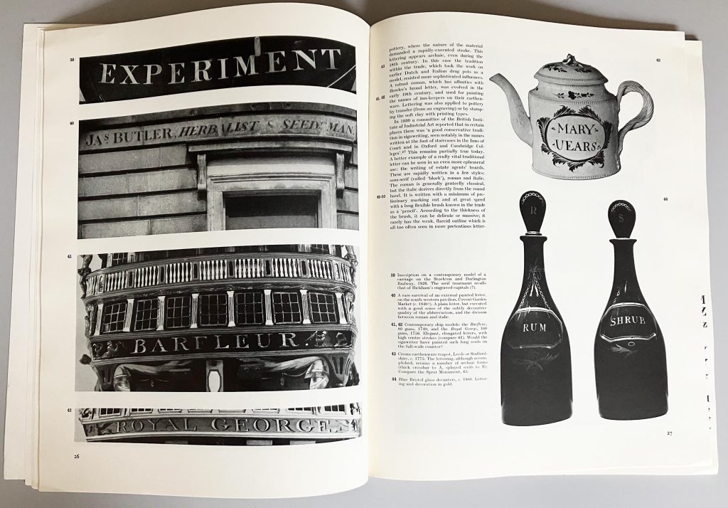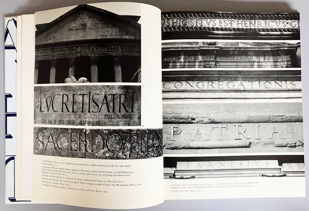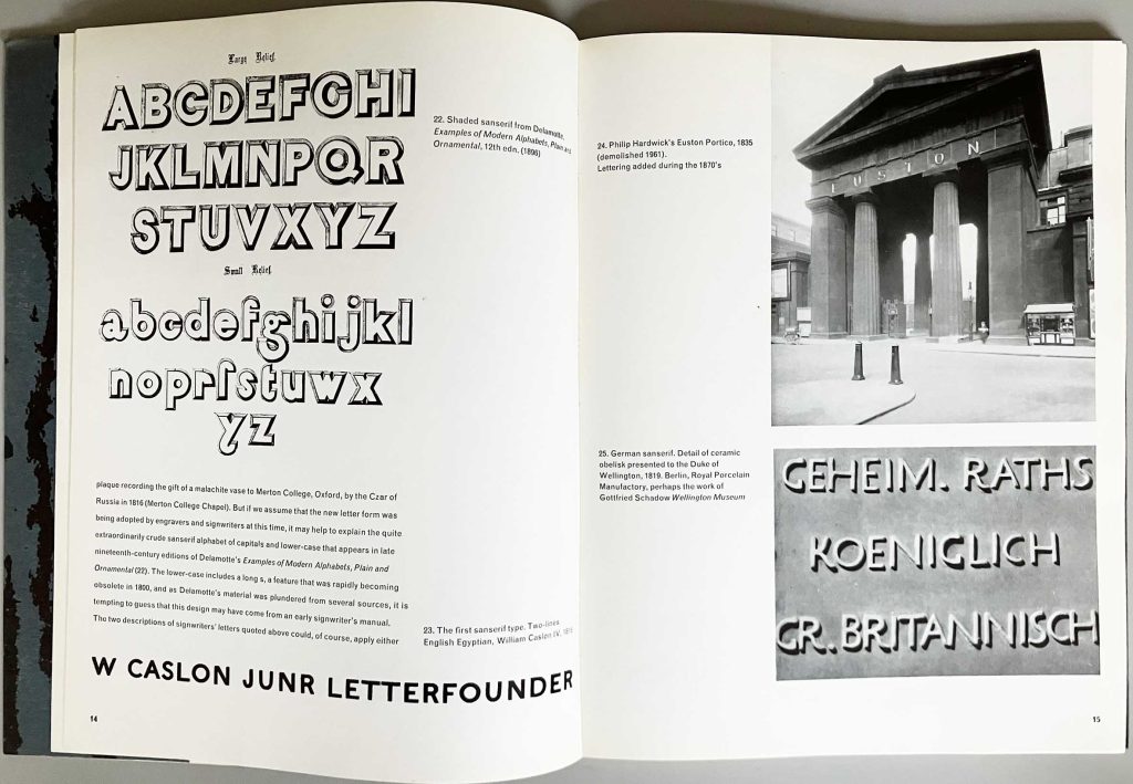 - At school in Rugby in the 1960s I had borrowed a library copy and, under its inspiration, for a self-determined essay project had written a survey of lettering in that town, with my own photographs.