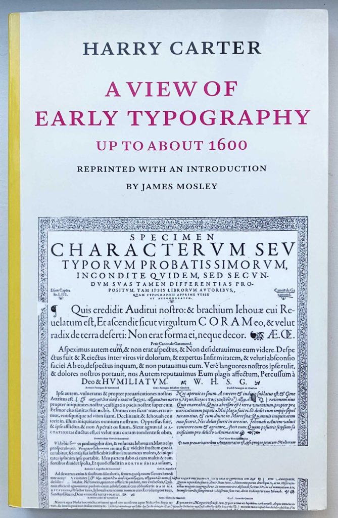 There were three Hyphen Press publishing projects that involved James in roles in which he was comfortable – as an editor of and commentator on the writings of others. The first, finished in 2002, was a reprint of Harry Carter’s A view of early typography, with a new introduction by James. The book had been published in 1969 by Oxford University Press, and had been out of print since the 1970s, when OUP had pulped remaining copies. We scanned a copy of the original and added the new introduction at the front of what was in effect a facsimile of the original book. This was a success, and our edition sold out in a reasonable number of years.
