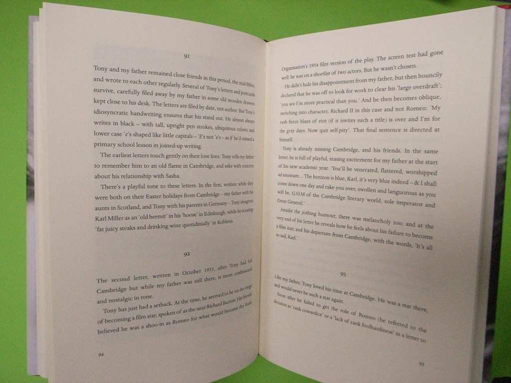 One trouble with the hardback edition of The noise of time is that its pages are bound with an unbending polymer adhesive, rather than a water-based adhesive that enables good opening. In that book – and with, for example, all the hardbacks of recent years published under Penguin Random House’s Allen Lane imprint – this glueing trouble is compounded by the fact that the grain of the pages in these books runs at right angles to the spines. Open such a book, and it wants to close.