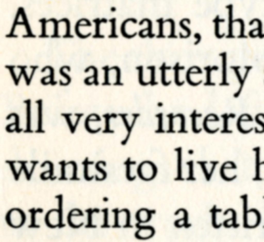 Top: detail of the digital Bembo used in ‘The noise of time’. Below: detail of Monotype Bembo, printed letterpress (Nicolas Barker, ‘Stanley Morison’, London: Macmillan, 1972)