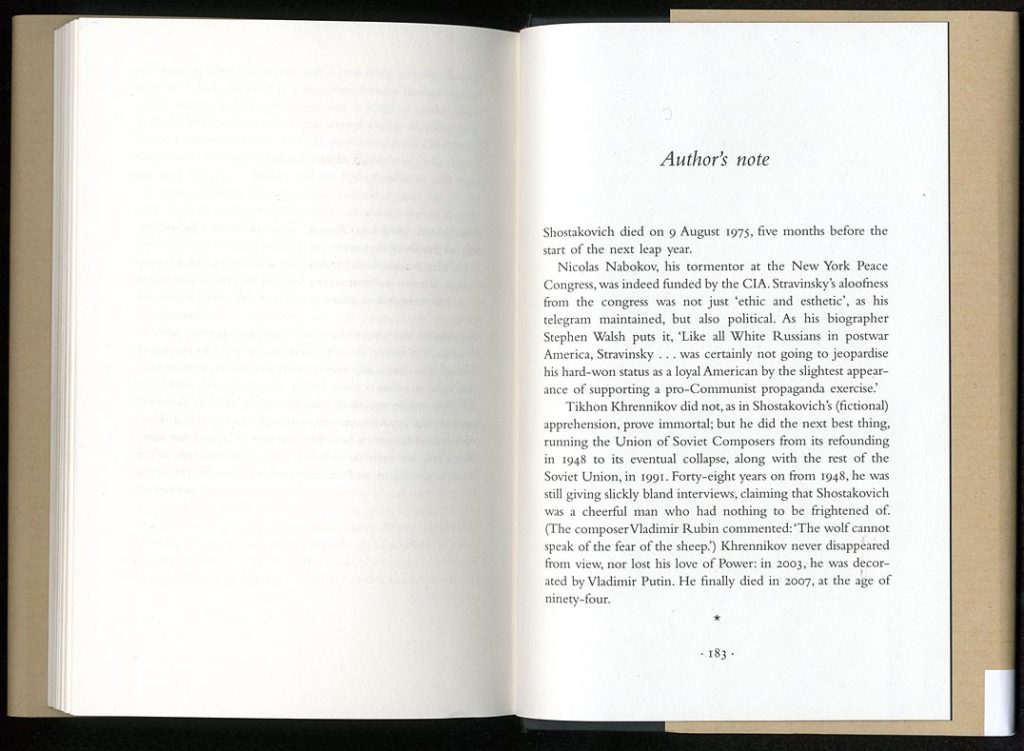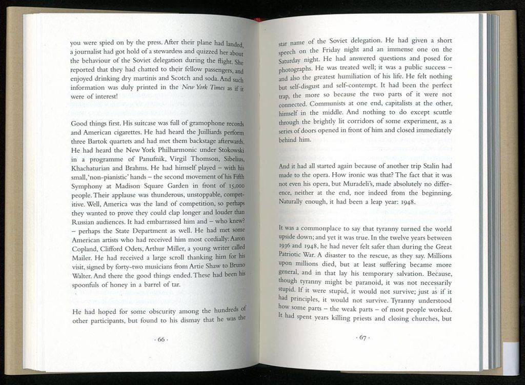 Julian Barnes’s latest novel was published in London a couple of weeks ago. This is mainly a note on its qualities as a physical object.1 The book is typical of present-day book production in the UK, and this is why it has been chosen for this commentary; although there are clear signs of an atttempt at something more ‘designed’: the sections of the book have been sewn (rather than cut and perfect-bound) and a headband has been applied at the top and bottom of the spine (it adds to appearances, but does nothing useful – except obscure the glue). The jacket illustration and design is pleasingly simple and tries (and inevitably fails – its materials and processes belong to a later, much plushier society) to summon up the aura of the Soviet culture that is the world of this novel. On the publisher’s website, one can find a conversation between Barnes and Suzanne Dean, the jacket designer.2 But they only talk about the jacket design.