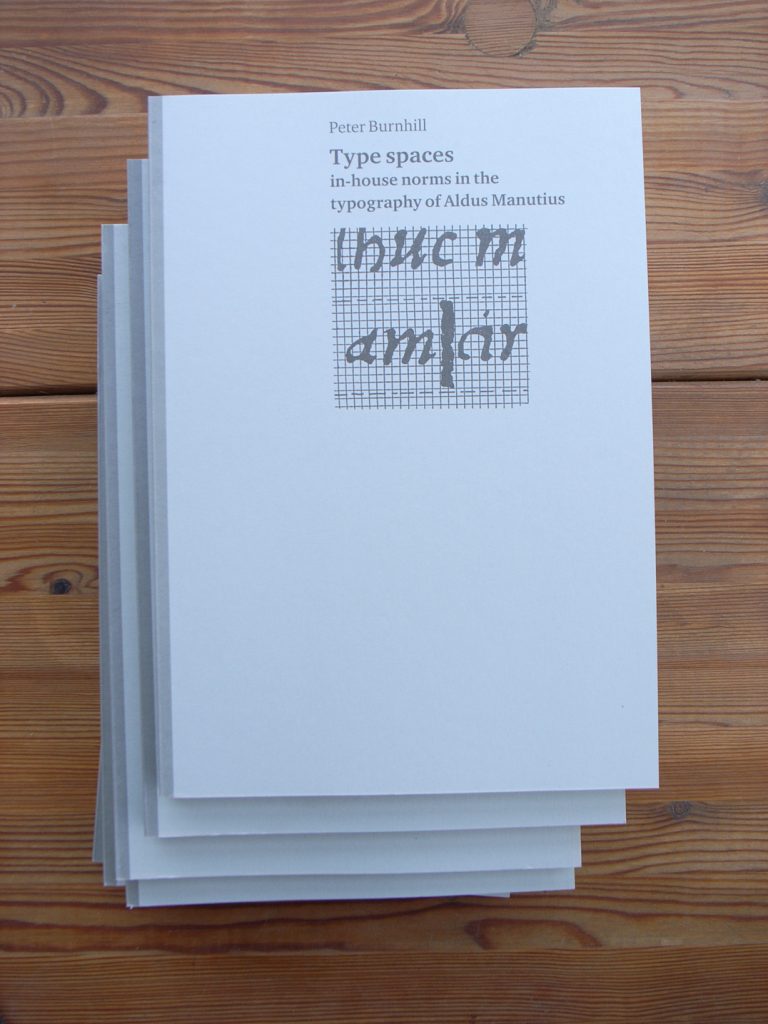In another of those warehouse discoveries, a few copies of the late Peter Burnhill’s Type spaces have come to light, after we had declared it out of print here (our North American distributor still has some left). There are several reasons to get hold of this book, which we are unlikely now to reprint. The most important reason is that, in effect, it puts forward a new theory of typography. Along the way, you can find advice on how to determine linespacing (‘leading’); after digesting this you will never need to spend time agonizing over this fundament of text-setting. And the book is a model of industrial production, especially in its binding. These last few copies are for sale only from this website.